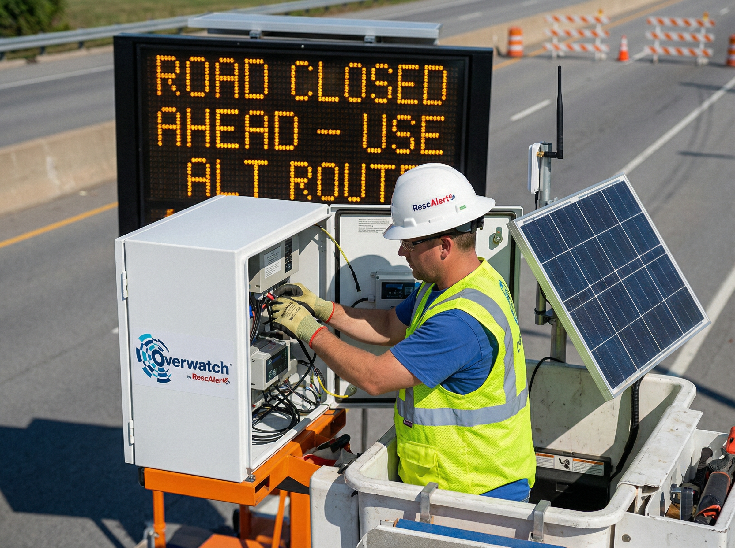 RescAlert’s Traffic Signals & Signage Solutions provide intelligent, real-time control and communication to improve roadway safety, traffic flow, and incident response. Powered by the Overwatch™ platform, these solutions integrate traffic signals, dynamic message signs, variable speed displays, and roadway sensors into a centralized system.